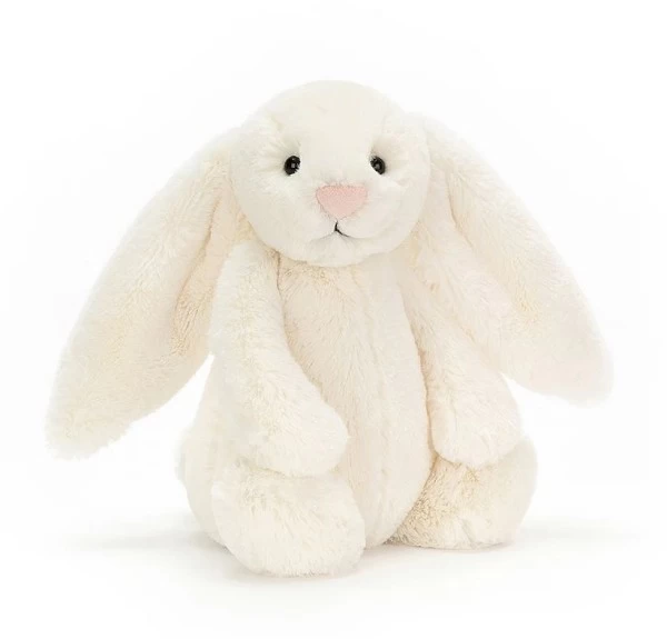Bashful Cream Bunny von Jellycat in der Größe medium ist ein echter Hasentraum: Das cremeweiße Häschen mit der rosa Nase wird sofort gekuschelt und nicht mehr hergegeben!