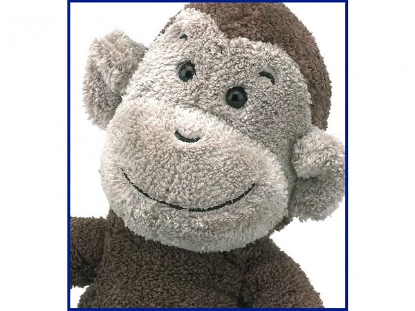Ein freundlicher Affe mit schwarzen Knopfaugen der Londoner Firma Jellycat.