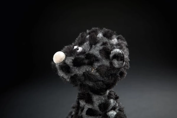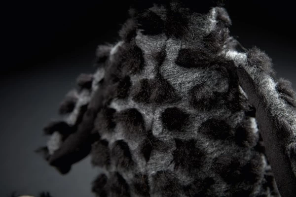 Hier ein schickes schwarzes Plüschfell mit Puscheln.