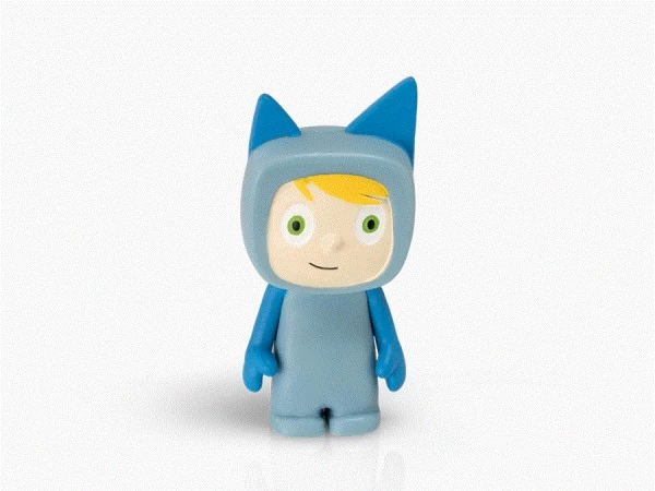 Dieser blonde Tonie trägt einen hellblauen Anzug mit den niedlichen Katzenohren.